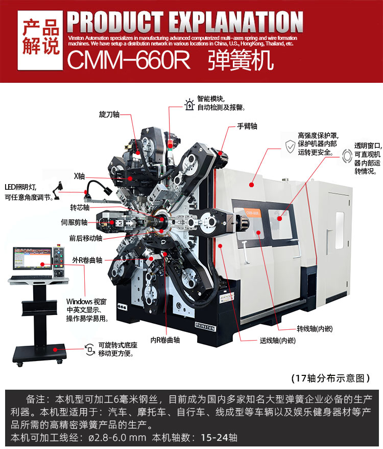 • 新款 CMM-660R 無(wú)凸輪多軸多功能電腦彈簧機(jī)